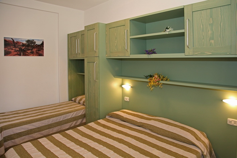Moderno Bilocale al primo piano con camera matrimoniale con letto aggiunto, soggiorno con angolo cottura e divano letto a 2 posti, bagno con doccia, ampio terrazzone coperto, TV,lavatrice e posto auto.