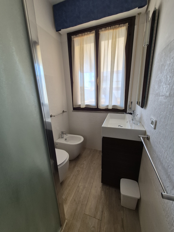 Ampio Bilocale a un piano e mezzo, camera matrimoniale con letto aggiunto, terrazzo, soggiorno con angolo cottura e divano letto per due persone, ampio terrazzone coperto antibagno con lavatrice, bagno con doccia, Tv e posto auto