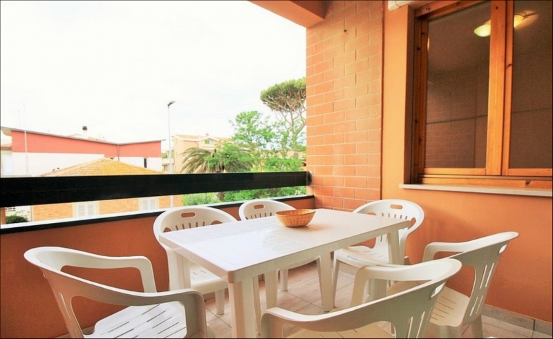 Moderno appartamento in zona centralissima al primo piano senza ascensore, camera con letto matrimoniale, studio con lettino singolo e terrazzino di servizio, soggiorno con angolo cottura e divano letto, bagno con doccia, Tv, lavatrice, aria condizionata, terrazzo coperto con vista mare laterale.