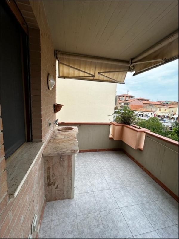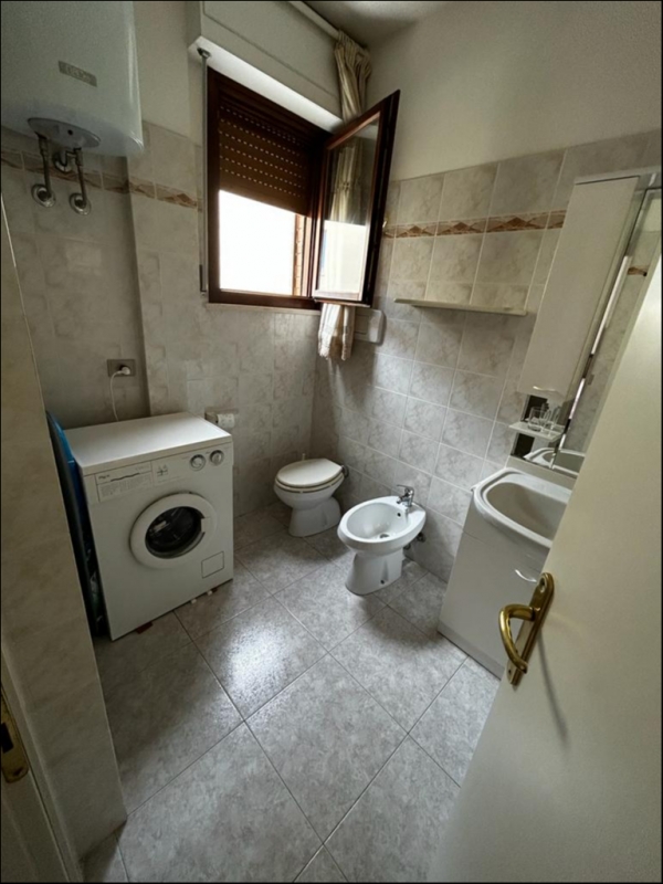 Ampio Trilocale in zona centralissima al secondo piano con ascensore. Camera con letto matrimoniale, camera con due lettini singoli, bagno con doccia e lavatrice, soggiorno con angolo cottura e divano letto, bellissimo terrazzo ampio con lavello esterno e tende da sole.