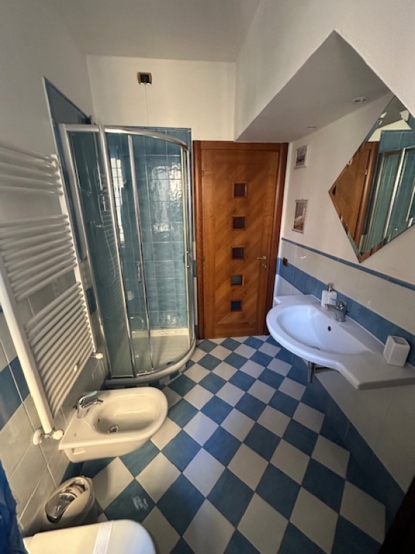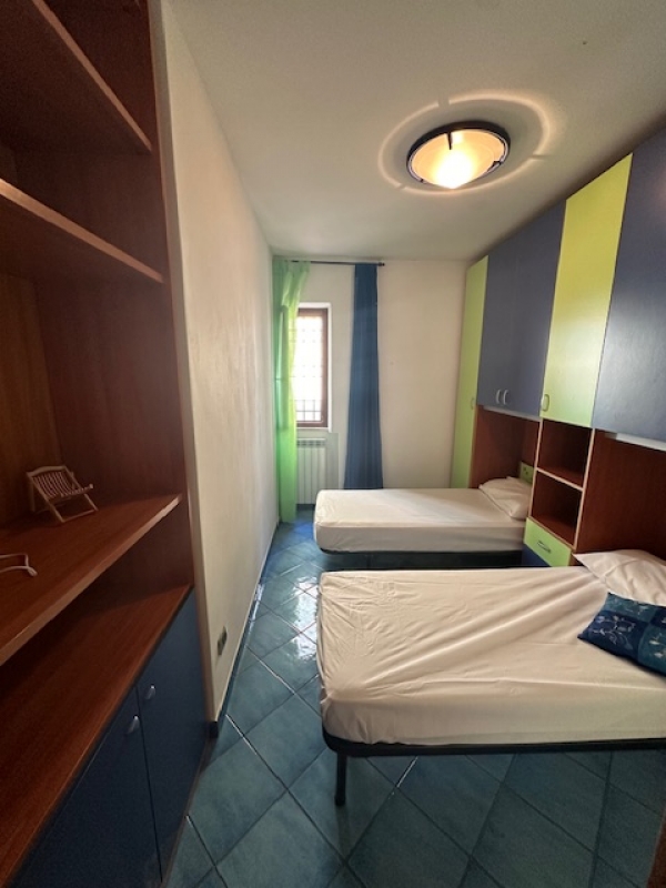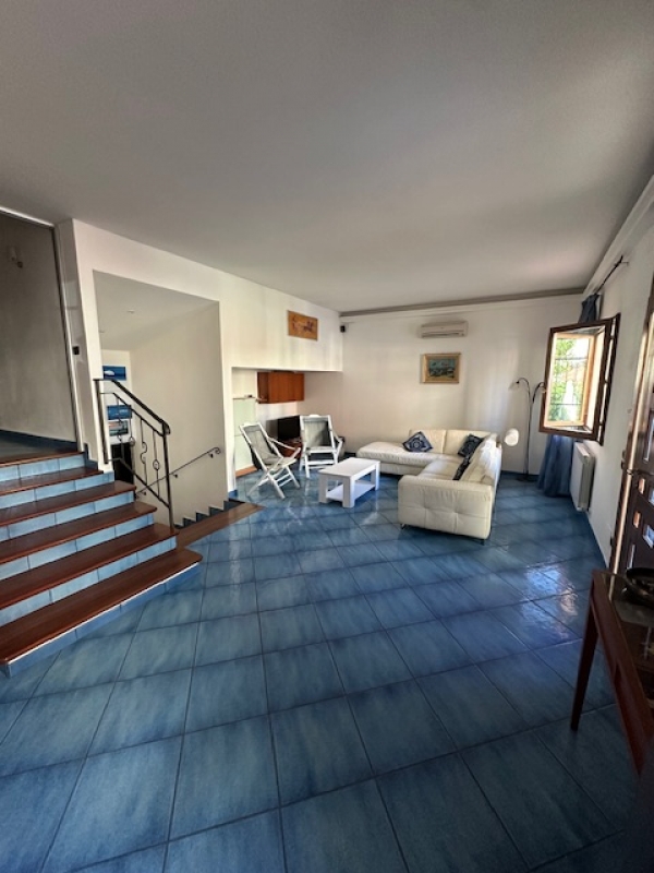 Ingresso indipendente con ampio resede attrezzato con tavolo ed ombrellone, con posto auto spazioso. Ingresso nel grande salone, al piano inferiore cucina con lavastoviglie, camera matrimoniale, stanza ripostiglio e bagno con doccia. Al piano superiore camera con letto matrimoniale due camere con due lettini singoli, cabina armadio, due bagni con doccia e terrazzo con lavatrice.