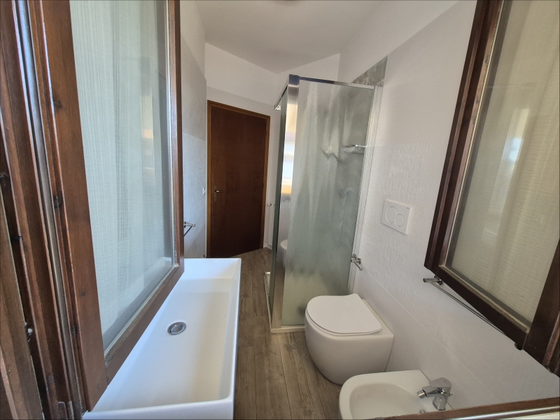 Ampio Bilocale a un piano e mezzo, camera matrimoniale con letto aggiunto, terrazzo, soggiorno con angolo cottura e divano letto per due persone, ampio terrazzone coperto antibagno con lavatrice, bagno con doccia, Tv e posto auto