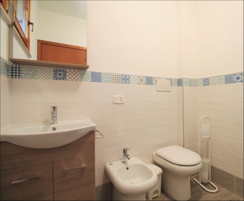 Moderno appartamento in zona centralissima al primo piano senza ascensore, camera con letto matrimoniale, studio con lettino singolo e terrazzino di servizio, soggiorno con angolo cottura e divano letto, bagno con doccia, Tv, lavatrice, aria condizionata, terrazzo coperto con vista mare laterale.