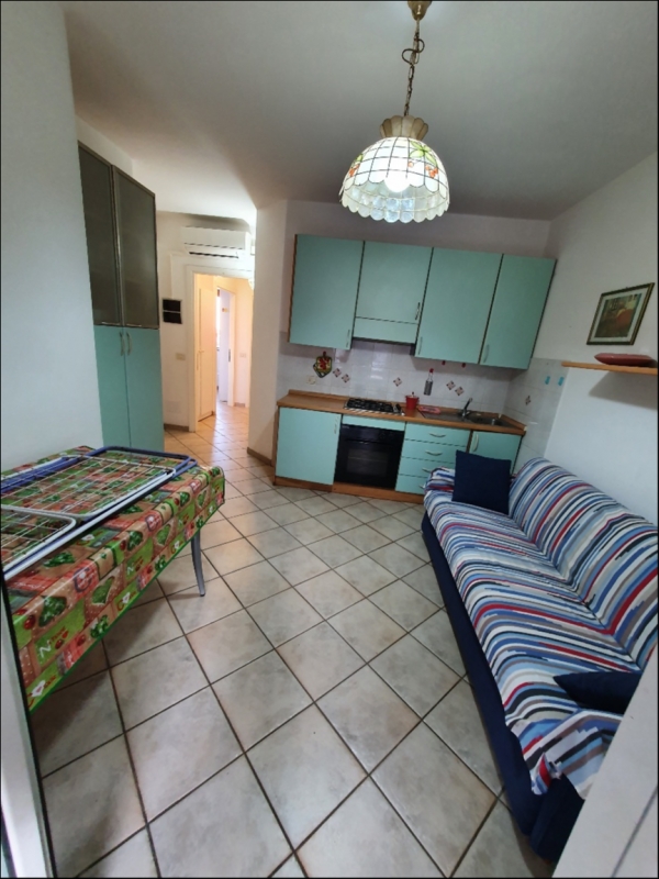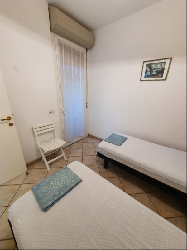 Trilocale in zona centralissima, collocato al 2 piano senza ascensore, composto da soggiorno con angolo cottura con uscita sul terrazzo dove si può mangiare e da dove si intravede il mare, camera con letto matrimoniale e camera con due letti singoli da cui si accede al terrazziono di servizio e il bango, l' appartamento è dotato di aria condizionata.